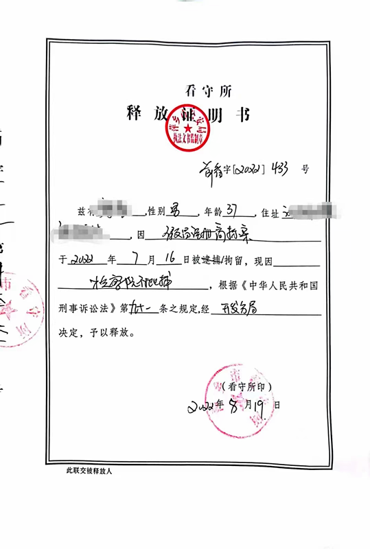 最终,检察机关认可了辩护人的辩护意见,作出不批准逮捕的决定,黎某在羁押了34天后获取保候审。