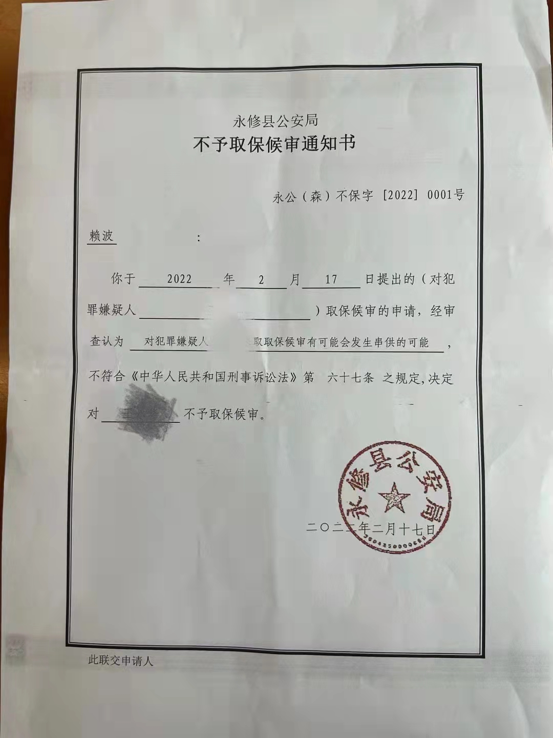 最终,检察机关认可了辩护人的辩护意见,作出不批准逮捕的决定,王某某在羁押了36天后获取保候审。